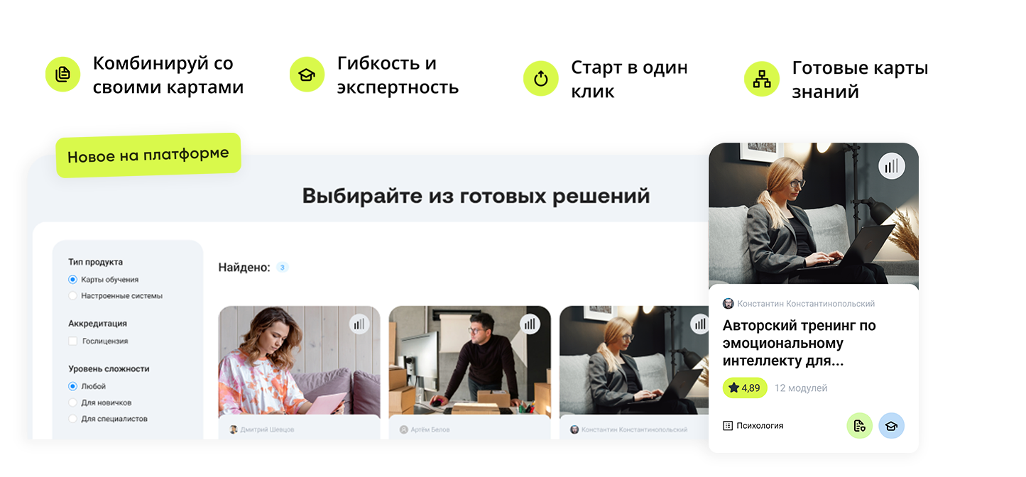 Маркетплейс готовых решений - это магазин карт знаний. Если у вас еще нет карт для обучения сотрудников, или вы не знаете как правильно составить карту, а может вы хотите поделиться своими картами знаний с другими - добро пожаловать в Маркетплейс!