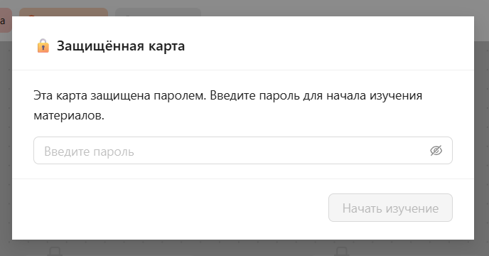 Функция «Защитить паролем» позволяет ограничить доступ к публичной карте и допускать к обучению только пользователей, у которых есть пароль.